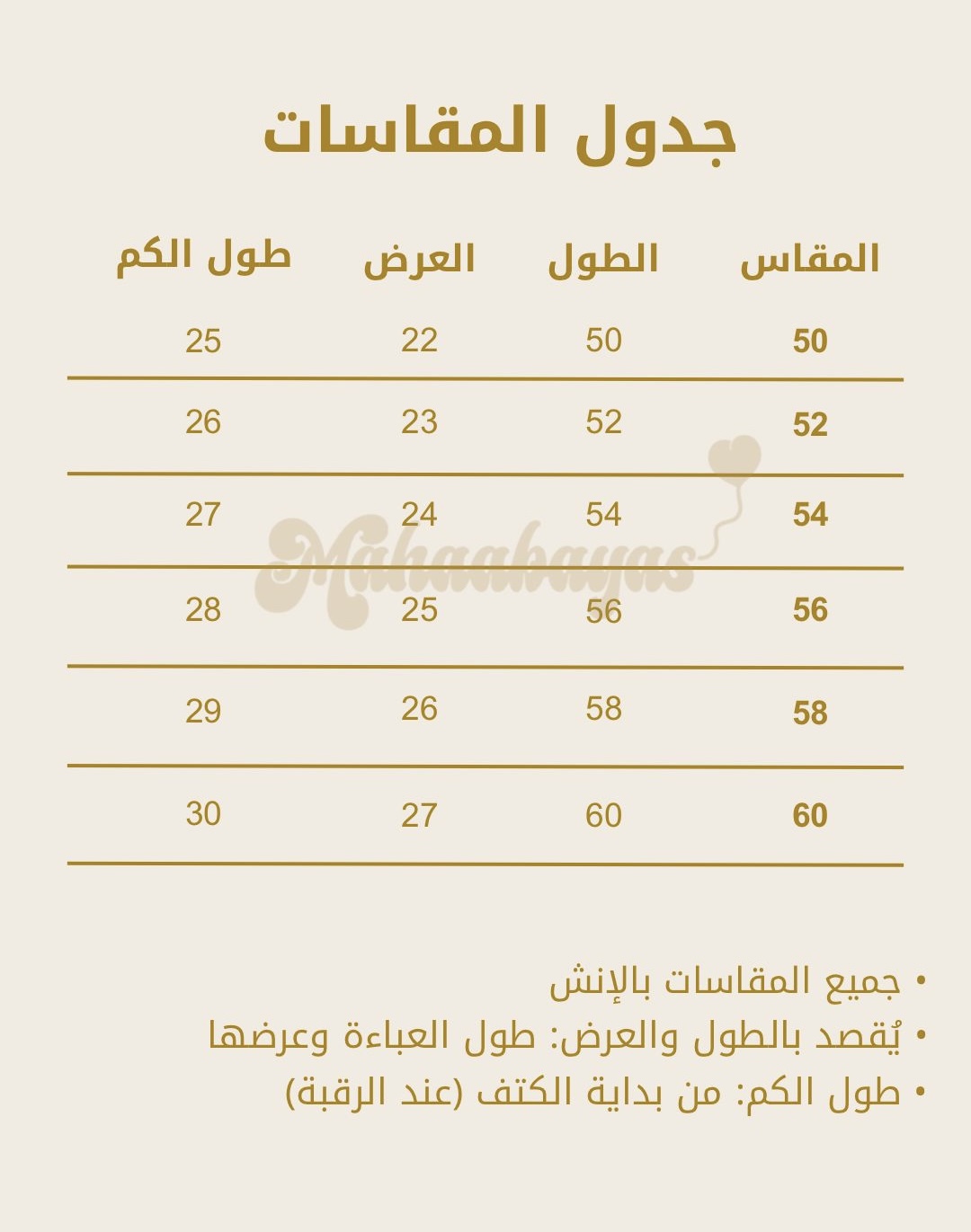 دليل المقاسات - MAHA ABAYAS